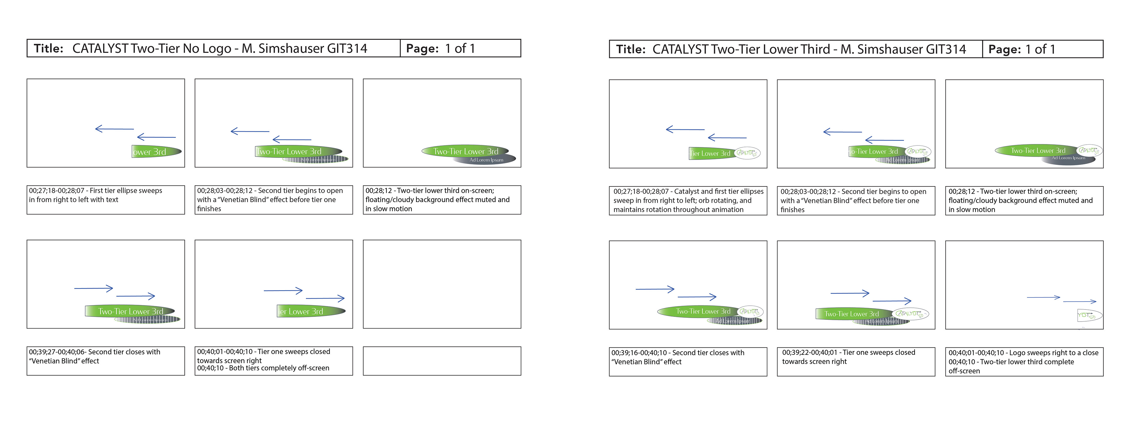 In conjunction with a revised bumper and logo project, the Arizona PBS program, "Catalyst" required a new set of lower thirds to use during the program. Using the newly created logo and color palette, a set of lower thirds was created for use with or without the Catalyst logo.