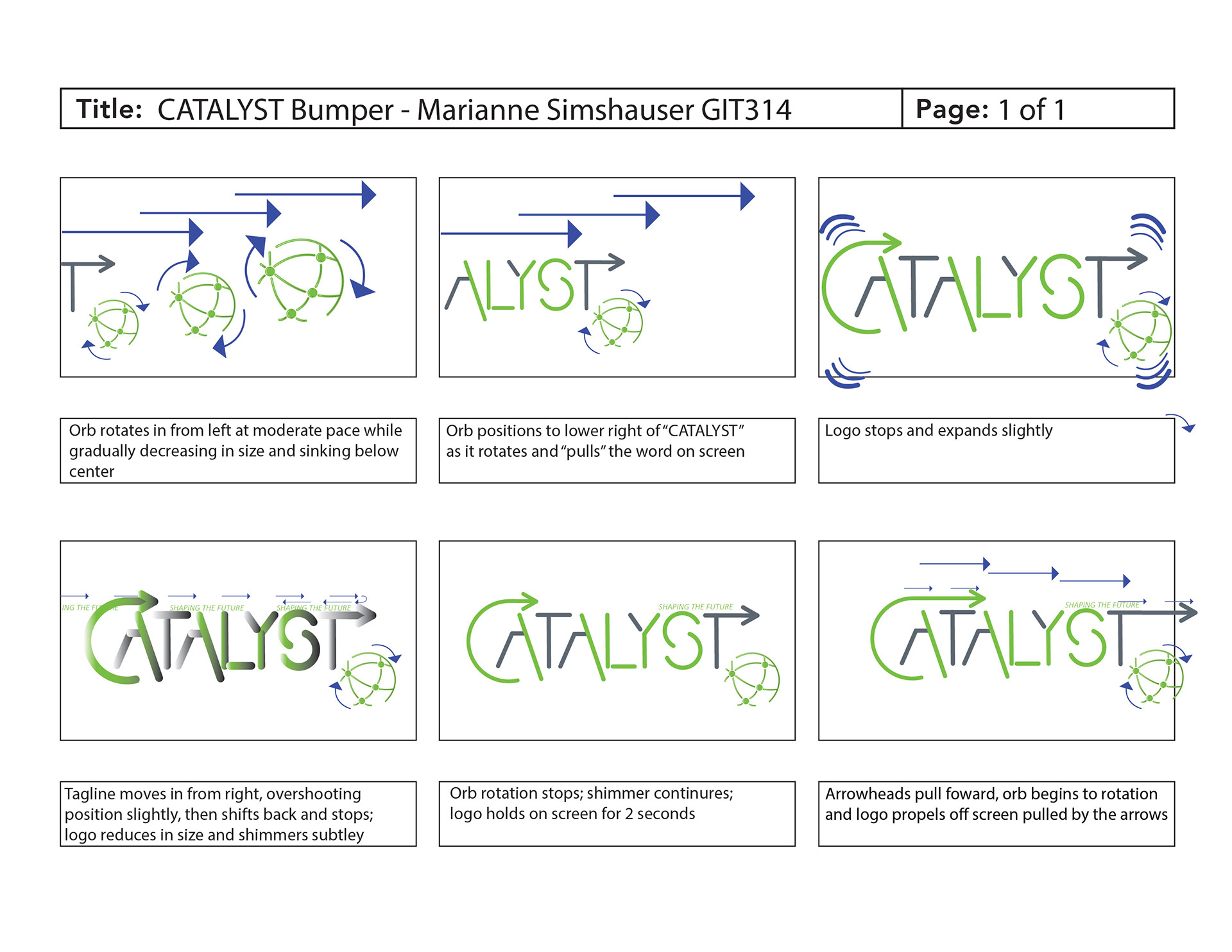 After an initial study of Arizona PBS and Catalyst's core audience, ideas were presented for a revised bumper that would play after the show's closing credits, as well as an updated logo for the program and its website.