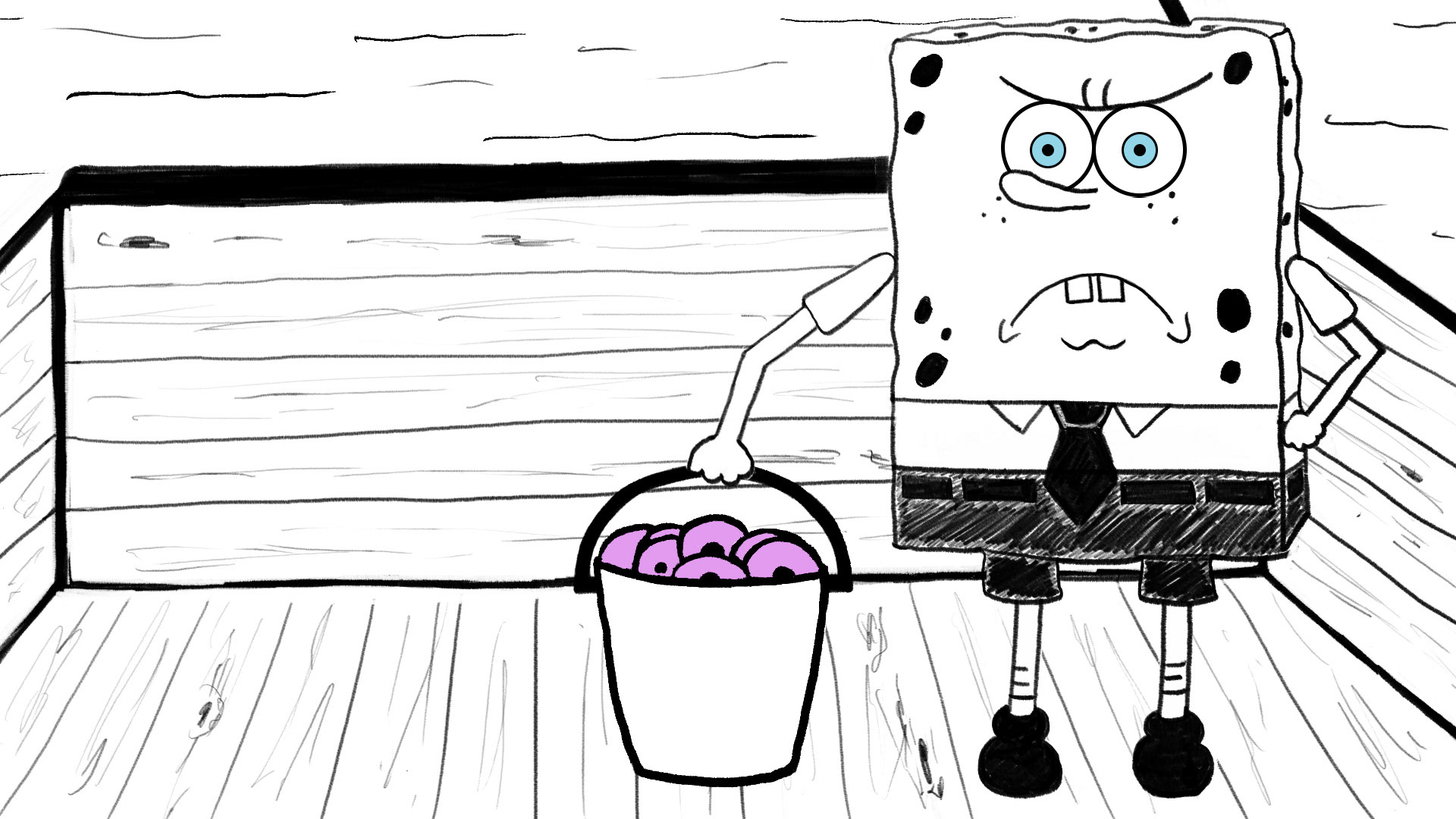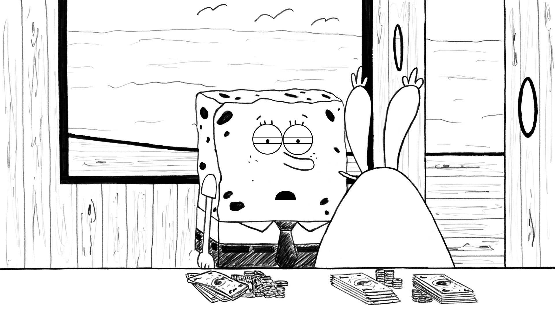 Created in PhotoShop, each character and prop were placed on individual layers to allow for specific animations throughout the animatic. Scenes were designed to coincide with the original movie dialog but with a more "SpongeBob" twist. Seventeen individual drawings were used for the twenty-one scenes that created the animation.
